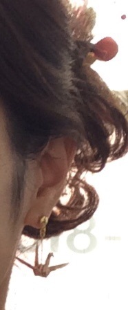 私は、以前に小江戸川越で買った、折り鶴のピアスをして行きましたよ
